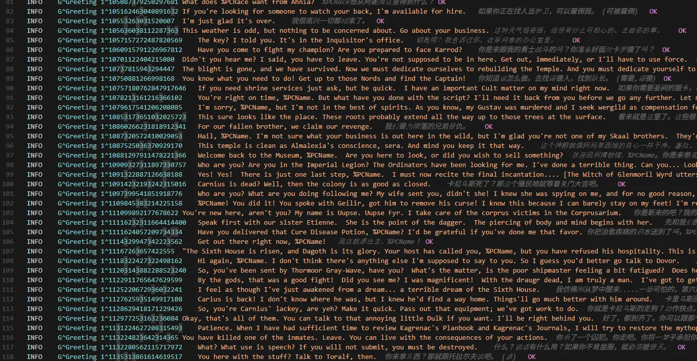 これで「特定NPCのセリフだけ見て翻訳」「ガード汎用だけ口調を統一」みたいな実務ができるようになった。