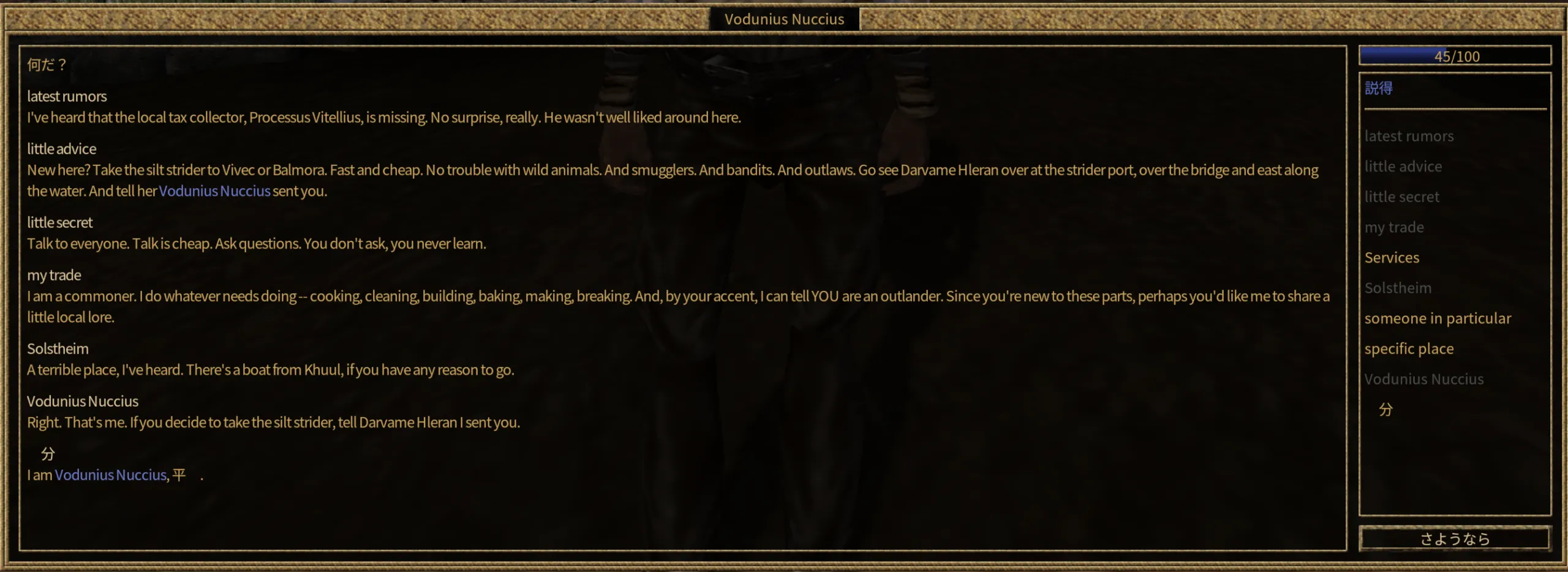 | 話者 (ONAM) | 衛兵 (guard_hlaalu) |