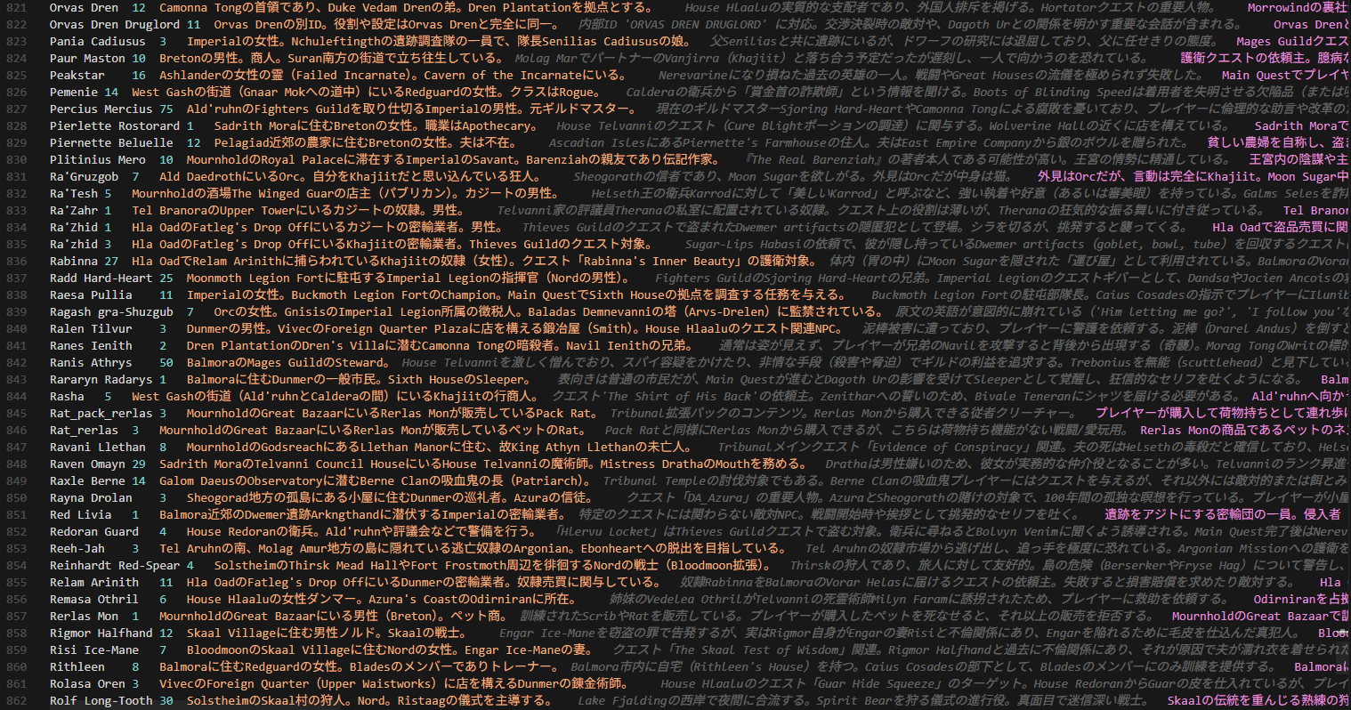 ここは意図的にデータを英語に戻すことで、デイドラ文字の表示問題は解決した。