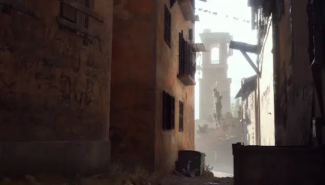 - 特徴的な建物として、内部にタレットが置かれている家があり、そこからジップラインで下に降りた先にこじ開けドアと武器ケースがある。ここは中級者向けのおまけルート。