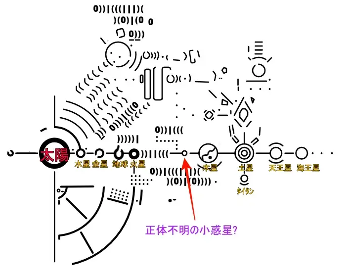 - 火星と木星の間に、正体不明の小さな円(小惑星帯の何かと仮定)
