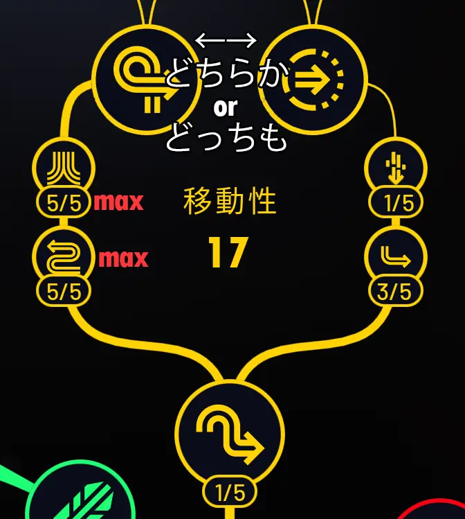 ここで大事なのは、長期間リセットできないなら最初に取るスキルを「即効性があって腐りにくいもの」で固めることです。これが【移動性】ツリーを最初に触る理由になります。