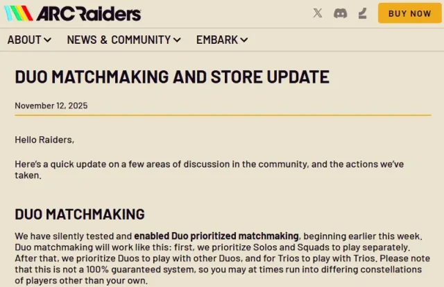 【ARC Raiders】デュオ(2人)モード、既に実装されていたらしい/ストアコスメ値下げ&差額返金が予告