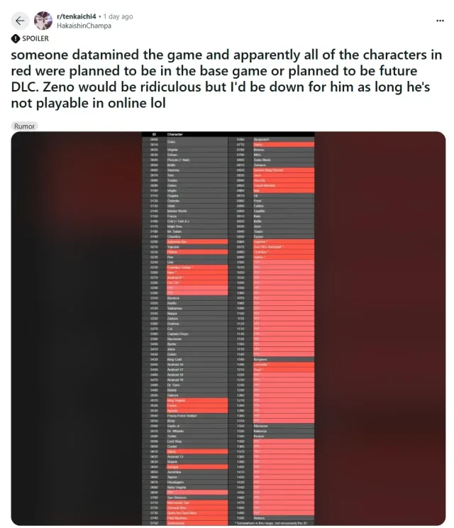 データマイニングされたDLCキャラやカットされたキャラの一覧が話題に[ドラゴンボール スパーキングゼロ]